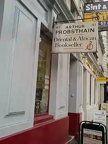 The bookstore was started in 1903 by Arthur Probsthain at Bury Place, and now bears his name.[2][3] It has been located at 41 Great Russell Street, opposite the British Museum, since 1905.[2][3]