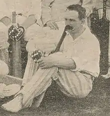 The Philadelphian cricketing establishment had strict rules for maintaining an American feel in their cricket. Wood was not allowed to play on the representative Philadelphian cricket team until he had satisfied a 5-year residency requirement.[6] In 1881 Wood accepted at offer to coach the Belmont Cricket Club and took a position with the Pennsylvania Railroad Company in Philadelphia in 1882.[7] Though he had come to Philadelphia to manage and play for Belmont,[5] his first-class debut in Philadelphia was between the American born cricketers in the city and those Englishmen that were resident there. Playing for the English Residents, Wood scored only 5 runs in the match and his side lost.[8] He played in this match each year until 1884 when he first played against the Philadelphians with the rest of America. He scored 32 runs in the second innings of this loss.[9] His debut for the Philadelphian side came on 5 September 1892 against the remaining US players. In this match, Wood led his new team with a career high 182 runs before being stumped. The Philadelphian side won by an innings and 281 runs.[10] He played for the next five years against touring foreign sides before joining the Philadelphians on their tour of England in 1897. He also took part in the tours of 1903 and 1908.[11] Wood died in Philadelphia on 25 August 1947.[1]