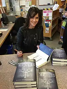 In November 2015, Dayton released an e-Novella entitled The Young Dread, revolving around a character who was a child in the 1400s but is still alive today, and aged only into a teen.[18] In 2016, Penguin Random House published Traveler, the sequel to Seeker.[19] According to Isabella Biedenharn of Entertainment Weekly magazine: "Traveler continues the story of Quin Kincaid, a Seeker who, on the night of her Oath, learned that her family's legacy is not quite what it seemed".[20] The third book in the series, Disruptor, was published in 2017. Booklist wrote "Readers of the first two volumes will find their long-awaited conclusion here, and Dayton will have found fans for life."[21] Teen Reads notes that Disruptor is written from different perspectives and even reveal the thoughts of secondary characters such as Maud, Dex and Nott. They wrote that "some chapters are short yet powerful, which leave the reader in complete suspense and anticipation".[22]