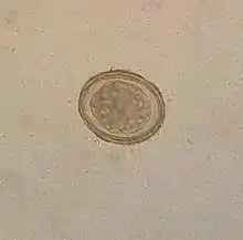 The eggs have a lipid layer which makes them resistant to the effects of acids and alkalis, as well as other chemicals. This resilience helps to explain why this nematode is such a ubiquitous parasite.[8]