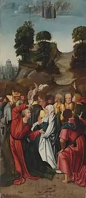In Christian art, the ascending Jesus is often shown blessing an earthly group below him, signifying the entire Church.[5] The Feast of the Ascension is celebrated on the 40th day of Easter, always a Thursday;[4] some Orthodox traditions have a different calendar up to a month later than in the Western tradition, and while the Anglican Communion continues to observe the feast, many Protestant churches have abandoned the observance.[6][7]