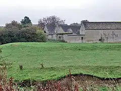 ![]() The listed manor house behind the earthworks that remain of the castle | |