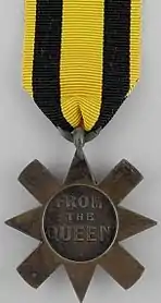 Reverse: within a circular central recess the inscription "From the Queen", the rest of the reverse surface is plain.