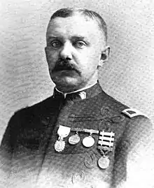 In May 1895, Miner returned to military service as the Pennsylvania National Guard's general inspector of rifle practice with the rank of colonel.[1] During the Spanish–American War, Miner was called to active duty and assigned to provide training and evaluation in rifle marksmanship for Pennsylvania National Guard soldiers who had volunteered for service in Cuba.[3] In August 1898, he was appointed to command the 7th Pennsylvania Infantry Regiment.[1] In January 1907, he was assigned to command the 9th Pennsylvania Infantry Regiment.[1] In October 1907, Miner commanded the regiment when it provided the escort for the governor during his review of the Pennsylvania Day exhibits at the Jamestown Exposition.[4] Miner resigned from the National Guard in 1912.[5]