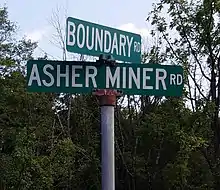 Asher Miner Road at Fort Indiantown Gap is named for Miner.[12] A Veterans of Foreign Wars post in Wilkes-Barre was also named for Miner.[13] In addition, the Wilkes-Barre Post of the Society of the 28th Division was named in Miner's honor.[14]
