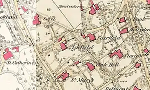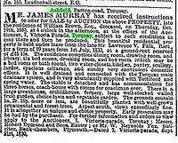 The advertisement for Ashfield that Mrs Brown placed in the newspaper in 1880 is shown. It describes the many rooms of the house and gives an outline of the garden with its beautiful trees and fine views.[4]