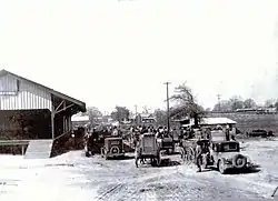 In March 1888, the Alabama Midland Railway built a small depot of Victorian railroad architecture in Ashford to be a waystation along the Bainbridge-to-Montgomery route. The depot was the only building to survive the 1915 fire that destroyed the rest of the town. The original depot received additions at least twice—an enclosed warehouse and open loading dock were added to the east, followed by racially segregated passenger waiting rooms on the west side. The depot faced two sidings that served for loading turpentine from the Adams Company still one block away, and pulpwood. Cotton bales, fertilizer, and a single sweet potato crop were loaded from both sidings.