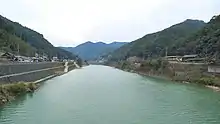 The town is bordered to the north by Yatsushiro City (八代市 Yatsushiro-shi). To the south lie Tsunagi Town (津奈木町 Tsunagi-machi) and Minamata City (水俣市 Minamata-shi) and to the east runs the Kuma river (球磨川 Kuma-gawa), separating Ashikita from Kuma Village (球磨村 Kuma-mura) and Hitoyoshi City (人吉市 Hitoyoshi-shi).
