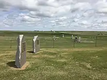 The Ashley Jewish Homesteaders Cemetery is an early 20th century burial site near Ashley, North Dakota. The Russian and Romanian Jews who farmed the area beginning in 1905 arrived as refugees fleeing pogroms and persecution. They had never farmed before, due to restrictions against Jews owning land in their native countries. Despite this lack of experience and the many rocks and boulders that peppered their claims, with the assistance of their German-Russian neighbors, and hard work and persistence, the great majority of them were successful enough to buy their land outright prior to the five-year waiting period contained within the Homestead Act of 1862, or to own their land at the five year mark.[2]
