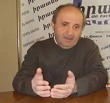 Ashot Manucharyan (Armenian: Աշոտ Մանուչարյան, born 1954 in Yerevan) is an Armenian educator, democratic socialist[1][2] politician, and one of the founding members of the Karabakh Committee.[3] After the independence of Armenia from the Soviet Union in 1991, he served as Minister of Internal Affairs from 1991 to 1992 and as Levon Ter-Petrosyan's National Security Adviser until 1993.[4] Together with Ashot Dabaghyan and Ashot Bleyan, Manucharyan co-founded School No. 183, later known as the Mkhitar Sebastatsi Educational Complex, which stresses a humanistic approach to education.[5]