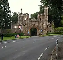 The mansion house and stables have been designated by Historic England as a Grade I listed building.[34] The house is listed on the Heritage at Risk Register and described as being in "slow decay".[35] The lower lodge to Ashton Court and attached gates, railings and bollards, which were built in 1805 by Henry Wood, are Grade II* listed buildings.[36] The lower lodge was fully refurbished in 2016 with funding from the Heritage Lottery Fund and is now named Ashton Gatehouse. The building is now a heritage site managed by Ashton Park School.[37] The garden and perimeter walls and railings are also listed.[38][39][40]