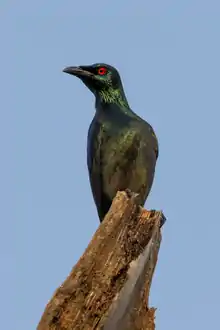 The Asian glossy starling (Aplonis panayensis) is a species of starling in the family Sturnidae. It is found in Bangladesh, Brunei, India, Indonesia, Malaysia, Myanmar, the Philippines, Singapore, Taiwan (introduced) and Thailand. Its natural habitats are subtropical or tropical moist lowland forest and subtropical or tropical mangrove forest. There is also a huge number of this species inhabiting towns and cities, where they take refuge in abandoned buildings and trees. They often move in large groups and are considered one of the noisiest species of birds. In the Philippines, it is known as kulansiyang, galansiyang, or kuling-dagat.
