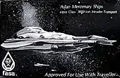 Aslan Mercenary Ships is FASA's second set of boxed ship plans, and includes complete deck plans and descriptions of two 3,000-ton vessels in use in by Aslan mercenary companies.[1]