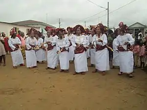 Aso ebi (Yoruba), sometimes spelled as Asoebi in Nigeria and Ashobie in Sierra Leone[1] and The Gambia,[2] is a uniform dress or dressing code/style that is traditionally worn by Yorubas and then some other African cultures as an indicator of cooperation, camaraderie and solidarity during ceremonies, events and festive periods.[3] The purpose of wearing the dress can be to serve as self-identification with age mates, relatives or friends during social occasions or funerals.