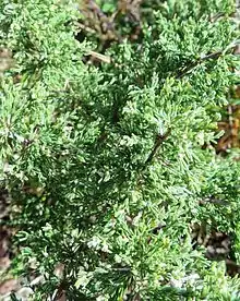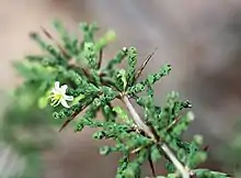 The grey-green leaves are small (3-5mm), velvety, needle-shaped and often appear in sets of five.