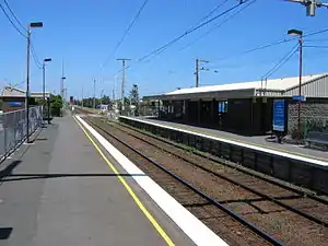 Aspendale railway station is located on the Frankston line in Victoria, Australia. It serves the south-eastern Melbourne suburb of Aspendale, and it opened in April 1891 as Aspendale Park Racecourse. It was renamed Aspendale on 1 August 1905.[1]