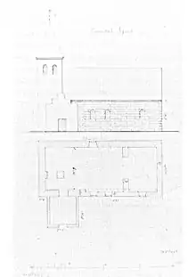In 1840 a new and larger school was built in the village.[35] The then decrepit church in Essenbæk Parish was torn down in the autumn of 1865,[36] and November 28, 1869, the consecration of a new[25] Essenbæk Church in Assentoft occurred.[13] At that time the village was growing north of the highway.[37]