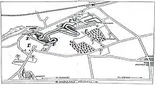 After the Reformation, the king confiscated Essenbæk Abbey and its estate in 1540,[16] and from 1579 Assentoft (Assentofftt) is known.[17] When it, Essenbæk Farm and e.g. Essenbæk Mill (Essenbech Møllested; Essenbæk Mølle) were acquired August 22, 1661 from the king by Hans Friis, there were 10 farms, four smallholdings and five houses in what was then Assentoft.[18] The town's location on moraine hills shows that agriculture was prioritized there, but cattle was probably kept on the meadows below the town.[2]