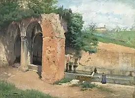 Nørregaard was born in Christiania (now Oslo), Norway. She was the daughter of Hans Peter Nørregaard (1818–1872) and Elise Jacobine Hesselberg (1821–1853). She and an older sister were orphaned early and both remained unmarried. Asta Nørregaard received her early education at the Knud Bergslien painting school together with Harriet Backer. She was a pupil of Eilif Peterssen in Munich from 1875 to 1878. She studied in Paris during 1879. Nørregaard held solo exhibitions at Blomqvist Kunsthandel in 1893, 1903, 1913 and 1925. She was also a frequent exhibitor at group exhibitions: Salon de Paris in 1881 and 1882, and world exhibitions in Antwerp in 1885 and Paris 1889. She received the King's Medal of Merit in gold in 1920. Her work is exhibited at the Munch Museum, Oslo City Museum, University of Oslo and National Gallery in Oslo.[2] [3] Nørregaard was included in the 2018 exhibit Women in Paris 1850-1900.[4]