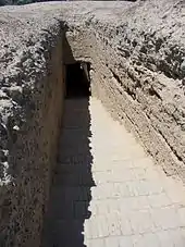 The Astana Cemetery (Chinese: 阿斯塔那古墓; pinyin: Āsītǎnà Gǔmù) is an ancient cemetery 37 kilometers (23 mi) southeast of Turpan, in Xinjiang, China, 6 kilometres (3.7 mi) from the ancient city of Gaochang. It served mainly as the cemetery for the descendants of Chinese settlers in Gaochang from the 4th century to the first half of the 8th century.[1] The complex covers 10 square kilometres (3.9 sq mi) and contains over 1,000 tombs. Due to the arid environment many important artifacts have been well preserved at the tombs, including natural mummies.