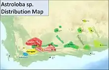 These species are restricted to the dryer inland regions of the southern Cape, South Africa. In their arid natural habitat, they tend to favour semi-shade positions, with well-drained soil and winter rainfall.[4]