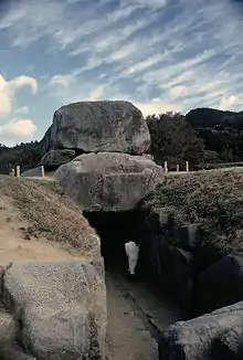 The Ishibutai Kofun is also located in Asuka. On March 12, 2004, the discovery of the remains of a residence's main building adjacent to the kofun was announced. It is likely that the residence belonged to Soga no Umako, who is believed to have been entombed in the kofun.