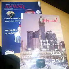 ASWAQ is an Arabic magazine in Malaysia. The magazine is one of few Arabic magazines in the country, which is based in Kuala Lumpur. It covers all types of Malaysian business sectors and events, but focuses on tourism, education, investment, and trade related events, places, and organizations. It targets Arabic travellers to Malaysia specially those coming from Gulf Countries.[1][2]
