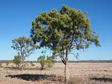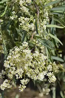 It grows as a shrub or small tree to 6 m, sometimes 10 m, high, with pale grey bark. It bears clusters of cream flowers from May to October. Its fruits are samaras, 20–40 mm long. It is drought tolerant, suckers freely and provides shade for livestock.[1][2]
