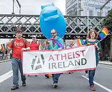 Atheist Ireland is an association of atheists based in Ireland. The group was initially founded by members of Atheist.ie, an online community which had been set up by Seamus Murnane in June 2006. Its current chairperson is writer and activist Michael Nugent.[1] Atheist Ireland is a former member of Atheist Alliance International,[2] and a former member of Humanists International (previously known as The International Humanist and Ethical Union),[3] and current member of The Coalition to Repeal the 8th,[4] Children's Rights Alliance,[5] the International Coalition Against Blasphemy Laws [6] and the National Women's Council of Ireland.[7] The group estimates it has about 500 members.[8]