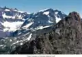 The Olympic Mountains are composed of obducted clastic wedge material and oceanic crust, primarily Eocene sandstone, turbidite, and basaltic oceanic crust.[6] The mountains were sculpted during the Pleistocene era by erosion and glaciers advancing and retreating multiple times.