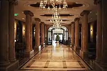 Describing the hotel as it looked in 1938, A. L. Easterman of London's Daily Express and later of the Daily Herald referred to its "heavily ornate furnishings, marble and gold pillars, great glittering chandeliers, and the deep settees placed well back in the recesses of the lounge as if inviting conspiracy."[5]