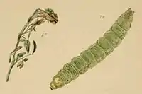 The larvae feed on Medicago sativa and Medicago minima. They spin together the terminal leaves of their host plant. Pupation takes place in a white cocoon between the spun leaves.