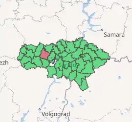 Atkarsky District (Russian: Атка́рский райо́н) is an administrative[1] and municipal[6] district (raion), one of the thirty-eight in Saratov Oblast, Russia. It is located in the northwest of the oblast. The area of the district is 2,700 square kilometers (1,000 sq mi).[3] Its administrative center is the town of Atkarsk[2] (which is not administratively a part of the district).[9] Population: 16,550 (2010 Census);[4] 17,915 (2002 Census);[10] 16,994 (1989 Census).[11]