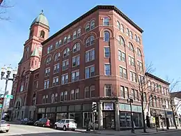 The Atkinson Building is an historic commercial building at 220 Lisbon Street in Lewiston, Maine, United States. Erected in 1892, the six-story Romanesque style building was the tallest in the city at the time, and is still an imposing presence in the city's central business district. It was designed by Auburn architect Elmer I. Thomas to harmonize with the adjacent Lewiston City Hall (built 1890-92), and is one of its finest Victorian commercial buildings. It was listed on the National Register of Historic Places in 1983.[1]