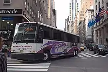 ![]() An Atlantic Express school bus operates through Oceanside, New York. | |