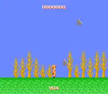 The earlier zones are generally easier in terms of difficulty, and the later zones are more difficult. Certain entrances may take the player from an easy zone directly into a harder one (with secretive warps jumping the player by a great number of zones), or vice versa. A time limit exists for each level, and the timer displayed on the lower part of the screen begins counting down from 999 all the way to 001 followed by OUT. Failing to reach the next zone during the time limit results in a loss of one life. The player also loses a life if their character touches an enemy, gets hit by an enemy attack, falls into a pit, or is caught in the explosion of their own dynamite stick. The game over screen appears once the player has no lives remaining.