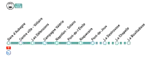 The length of the tram line runs between seven stations all of which are located within Aubagne. The tram line, like the municipal bus system which has been operating tariff-free since 15 May 2009, sat a world first in public transportation.[3] The initial project comprised two lines with a common central section; the second line was cancelled in 2014.