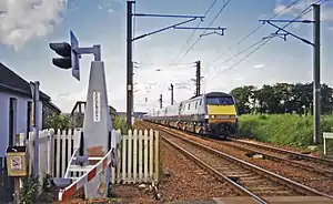 Trains pass at speed on the West Coast Main Line but there is no station at the site now.