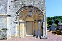 [9] The Church was founded by Trinity Abbey, Vendôme, who owned a nearby priory-priest. The church depended additionally on the Baron of Audrieu (possibly by retrocession of the priory of Saint-Nicolas-de-la-Chesnaye to whom this right belonged in the 14th century).
