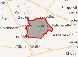 - Audrieu on Géoportail, National Geographic Institute (IGN) website (in French)