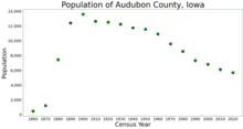 Audubon County is a county in the U.S. state of Iowa. As of the 2020 census, the population was 5,674,[1] making it Iowa's third-least populous county. Its county seat is Audubon.[2] The county was named after John James Audubon, the naturalist and artist.[3]