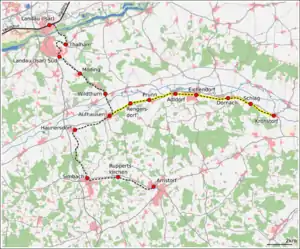 The Aufhausen–Kröhstorf railway was a branch line in the province of Lower Bavaria in southern Germany. The entire course of this former railway ran on what is today the municipality of Markt Eichendorf.