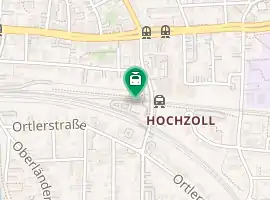 Between tracks 1 and 5 there is a bus stop used by city buses on route 29, which runs only on weekdays (in the peak hour every 10 minutes). About 250 metres north of the station along Hochzoller Straße there is a bus and tram stop called Hochzoll Mitte on Friedberger Straße, which is served by city bus line 29 and tram line 6.