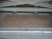 A commemorative plaque on the bridge reads "Hunzigenbrücke erbaut 1835 in der Hunzigenau. Versetzt und restauriert 1973-74 / Umbenannt in Auguetbrugg. Die Brücke steht unter dem Schutz des Bundes.", or roughly translated "Hunzigen Bridge built in 1835 at the Hunzigenau. Moved and restored 1973-74 / Renamed Auguetbrugg. The bridge is under the protection of the Swiss Confederation."
