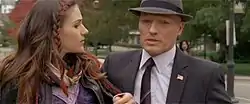 Up to the point the episode "August" aired, only one character that was part of a group known as "Observers" had been introduced. In this episode, two more such individuals were revealed: August (played by Peter Woodward) and December (played by Eugene Lipinski).[6][7] The creation of Observers was one of the first ideas the writers of Fringe thought of when developing the show in its early stages, when they asked each other, "What if there were these characters where all they did was watch?".[5] Pinkner and Wyman thought of creating Observers by "looking for something... iconic" that had the "quality of being invisible".[8] Though the Observer called September has appeared in every single Fringe episode in a brief cameo, he was first featured prominently in the fourth episode of the first season. The producers thought of unique characteristics for "somebody who wasn't of our world," evolving to the Observers having bald heads, no eyebrows, and "largely deadened" senses, which led to a love for extremely hot peppers.[8]