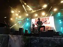 Since the members of the band are Christian, their beliefs are sometimes reflected in their writing and lyrics. However, these lyrics aren't meant to be religious but rather, positive and in songs such as "Fault Line", for the band's fans. Brent Rambler said in a 2016 interview, "We don't preach from stage, and we made the active choice that this band is about music, and being a positive influence. Since a lot of people correlate Christianity for positivity, that label has stuck with us."[65] Recently some of the members have stated in interviews that not all of the band are Christian.[66] They have said that they now just hope to spread positive messages in their music and lyrics, whether they are perceived as spreading a Christian message or not.[67] In a 2019 podcast, Matt Greiner stated that the band decided to drop their Christian label in 2012, after disputes within the band over what kind of message they were trying to spread, and whether their main intention was to make music or to spread a Christian message. Although the decision initially was met with disapproval by Greiner and Luhrs,[68] members of the band continue to state that August Burns Red is not a Christian band.