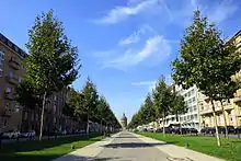 Starting in spring 2011, the green space was partially redesigned with a continuous central walkway. The old sycamore trees were felled in several construction phases and replaced by 228 young trees by summer 2014, after most of the more than one hundred year old sycamore trees were affected by the fungal disease Massaria and could no longer be preserved. Financing was provided by a three-year fundraising campaign.[4] The redesigned facility was inaugurated in mid-May 2015.