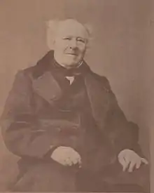 Auguste-François Michaut[lower-alpha 1] was born in Paris in 1786 and was brought up in an artistic environment . His father Jean Michaut was a member of a craftsman association with Jean Baptiste ( Jean's brother). They owned a fine art foundry specialized in casting and chiseling, which was located in Paris, rue du Temple.[1] In 1801 his mother died. By 1809 he had entered the École des beaux-arts de Paris where he primarily found himself very much inclined towards the practice of sculpture. At the time, he was the pupil of the sculptors François Frederic Lemot and Jean Guillaume Moitte. In 1809 he was admitted to take part in the prix de Rome competition but he suffered from a bad chest condition[2] which forced him to give up sculpting altogether. He became a medallist instead. André Galle taught him the fundamentals of engraving; his signature was F.Michaut and a Roman lamp upon an anchor was what he used as a privy mark. During that same period he befriended fellowstudent James Pradier also one of Lemot's pupil. On 13 June 1813 he won second prize for the Grand Prix de Rome contest[3] in the medal-engraving section, the subject being the French Hercules; the Academy had decided no first prize would be granted that year. He took part in the contest again the following year, but the jury members delivered their apologies to Michaut:[4] one second prize only was to be awarded and he had already obtained it the year before; there was indeed no remaining award other than the Grand prix de Rome he could possibly acquire. Thereafter he was appointed by Napoleon the 1st's government to execute the medal L'aigle français sur la Volga under Dominique Vivant Denon's supervision. Auguste François's son,[lower-alpha 2] Auguste Victor Michaut, was born on 19 February 1814 but he would only become his legal son ten years later when his father eventually married Jeanne Louis, his mother. She was five years older than Auguste François Michaut and had divorced from her previous husband fifteen years older than her in 1804.