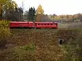 The Aukštaitijos narrow gauge railway (Lithuanian Aukštaitijos siaurasis geležinkelis for highlands narrow gauge railway) is a 68.4 kilometres (42.5 mi) long tourist train from Panevėžys to Rubikiai in Lithuania with a gauge of 750 mm (2 ft 5+1⁄2 in).