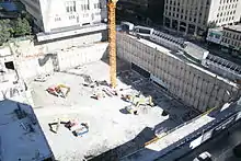 The building is connected by tunnel to adjacent College Park complex, which contains the College subway station.[14] The building has a shared patio on the 5th floor and a 40,000 square-foot fitness facility. There is a fast food court in the basement level of the building with space for 12 vendors. In 2015, the popular Toronto-based website BlogTO described Shops at Aura as "Toronto's Worst Mall".[15] This was largely in reaction to the half-vacant retail space, limited offerings at the food court, and atmosphere. As of 2016, only three of the 12 fast food units were occupied.[14]